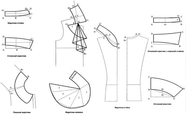 При построении воротников необходимо знать длину горловины спереди и сзади. Эти размеры берутся с чертежа спинки и полочки изделия. Подробнее...